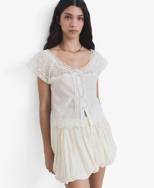 Mango Women's Lace Details Cotton Blouse