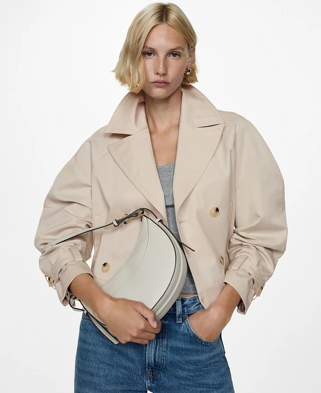 Mango Women's Epaulettes Detail Short Oversized Trench Coat