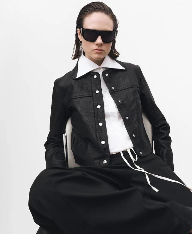 Mango Women's Flap Pockets and Leather Effect Jacket