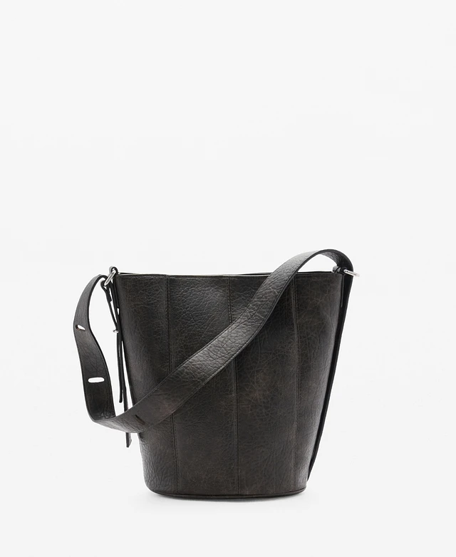 Mango Women's Buckle Detail Canvas Bucket Bag