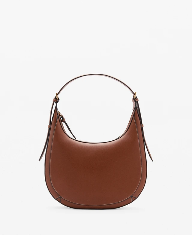 Mango Women's Gathered Pockets Leather Shoulder Bag