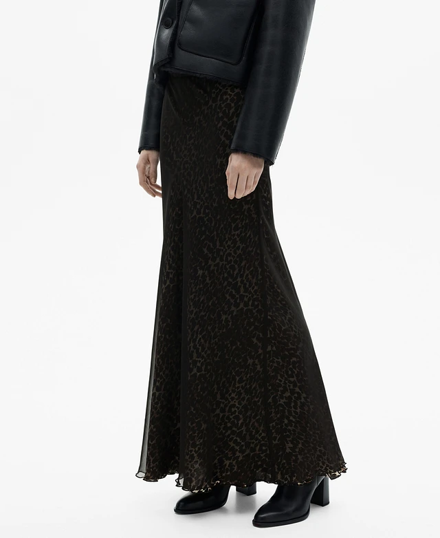 Mango Women's Leopard-Print Satin Skirt