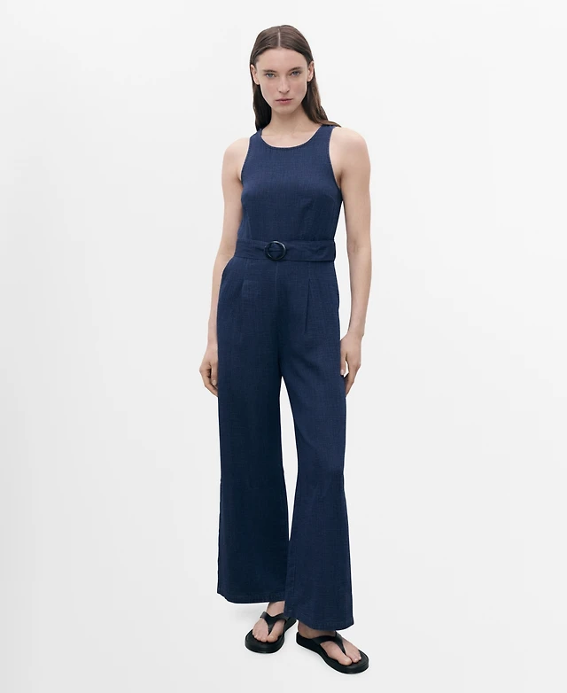 Mango Women's Straight-Fit Short-Sleeved Jumpsuit