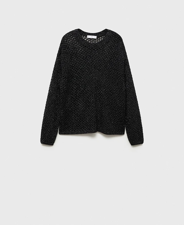 Mango Women's Striped Openwork Knitted Cardigan Sweater