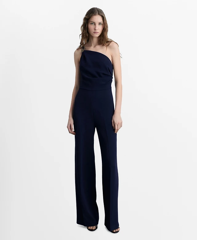 Mango Women's Metallic Detail Asymmetrical Jumpsuit