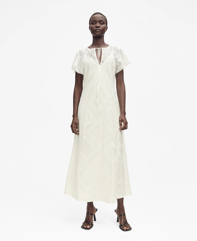Mango Women's Openwork Details Embroidered Dress