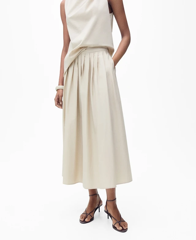 Mango Women's Pleated Detail Flared Skirt