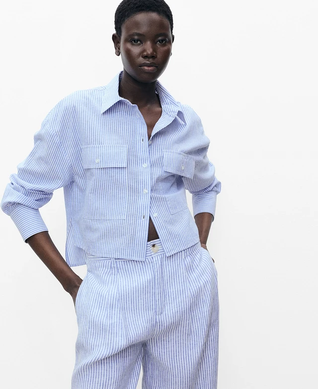 Mango Women's Pockets Striped Cropped Shirt