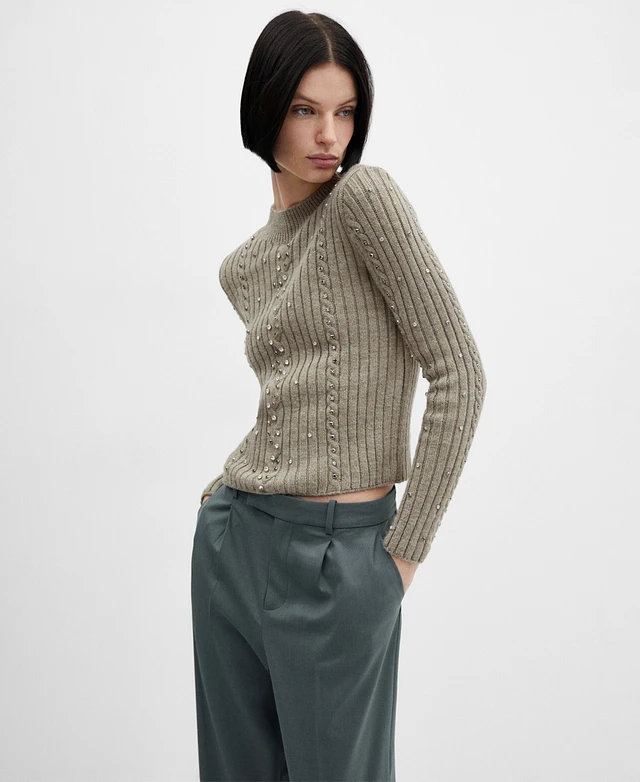 Mango Women's Rhinestone Detail Ribbed Sweater