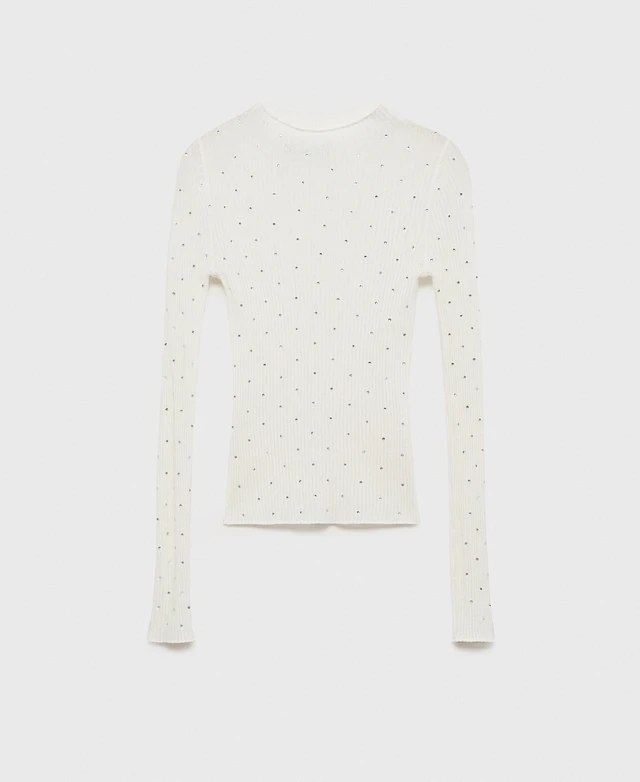 Mango Women's Rhinestone Detail Ribbed Sweater