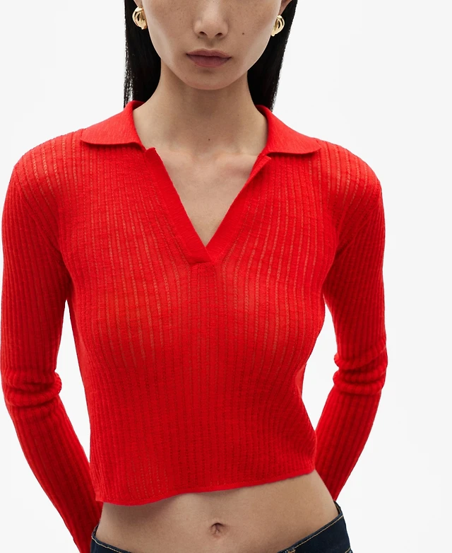 Mango Women's Polo Collar Knitted Sweater