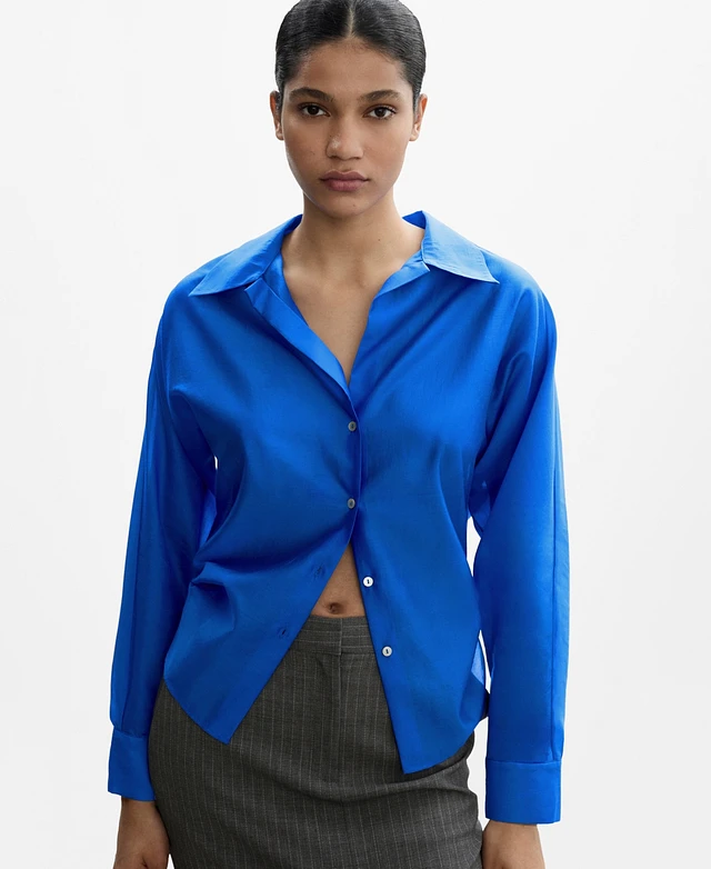Mango Women's Regular Cotton Lyocell Blend Shirt