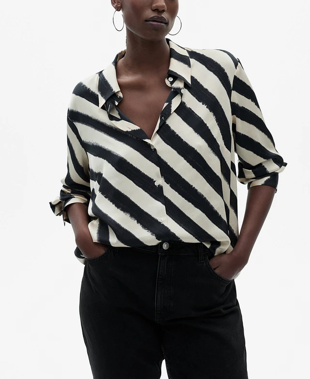 Mango Women's Short Sleeve Linen-Blend Shirt
