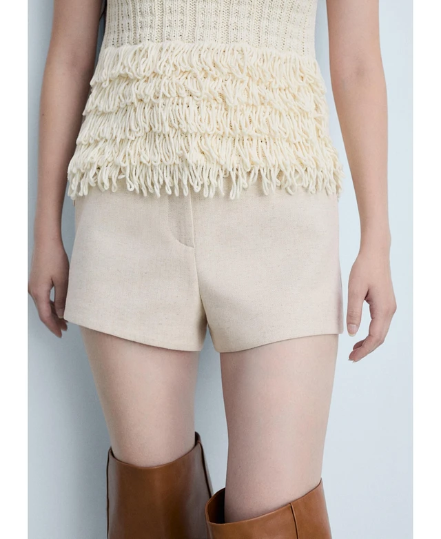 Mango Women's Straight-Fit Drawstring Linen Shorts