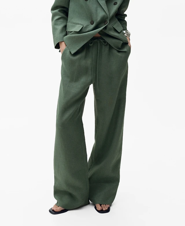 Mango Women's Pleated Detail Straight-Fit Linen Pants