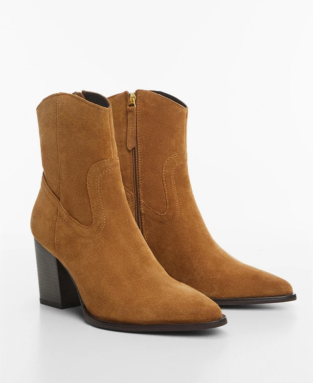Mango Women's Bow and Decorative Stitching Leather Boots