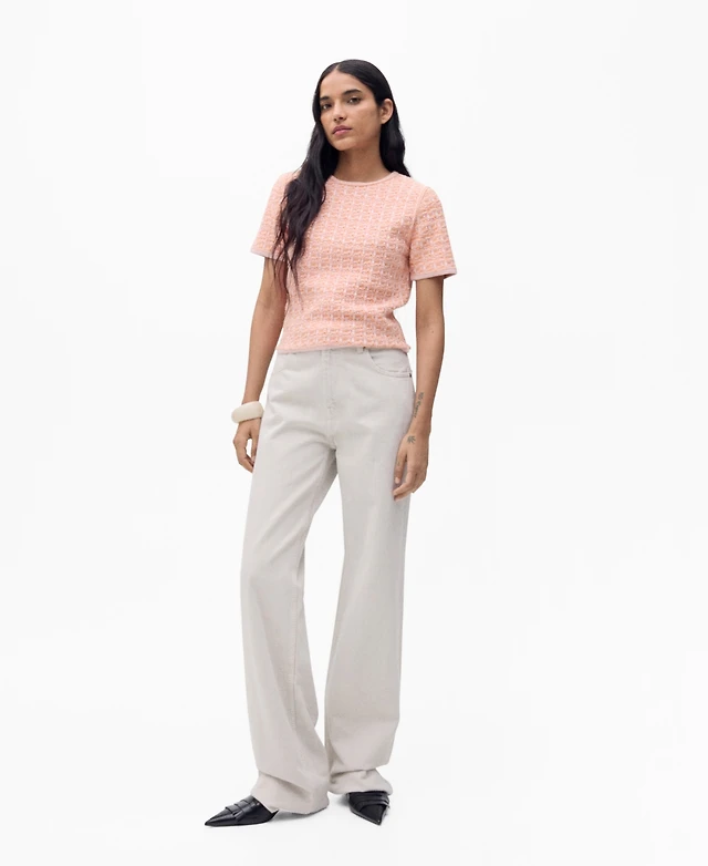 Mango Women's Tweed Short Sleeve Sweater