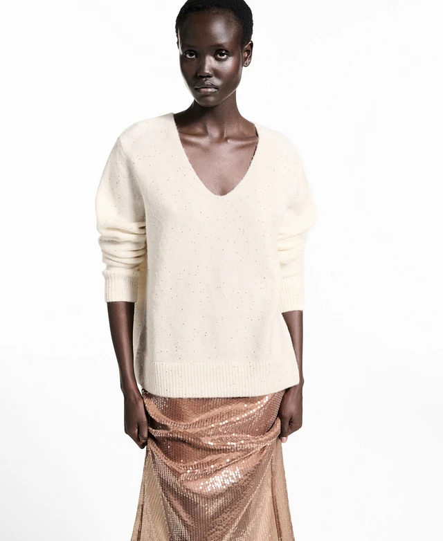 Mango Women's V-Neck Sequin Sweater