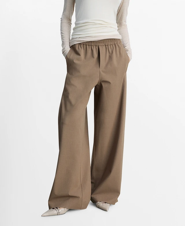 Mango Women's Wide Leg Mid-Rise Pants