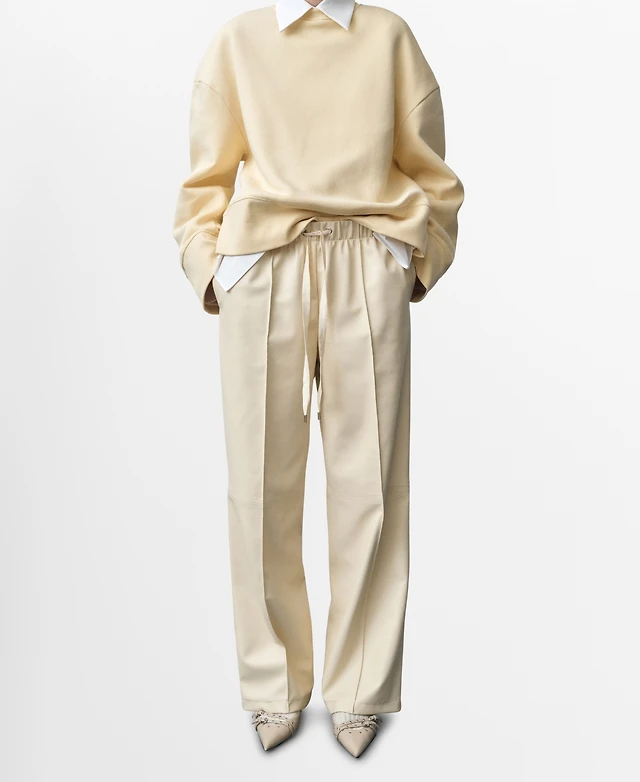 Mango Women's Leather-Effect Straight Trousers