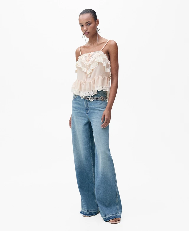 Mango Women's Wide Leg Low Frayed Hem Jeans