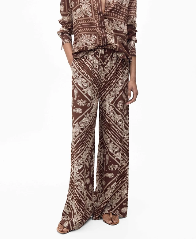 Mango Women's Wide Leg Paisley Pants