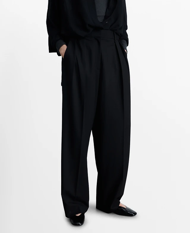 Mango Women's Wide Leg Pleated Trousers