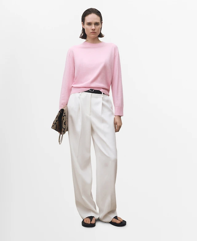 Mango Women's Cotton-Linen Round Neck Knitted Sweater