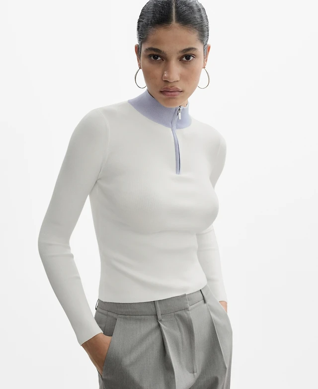 Mango Women's Zipper Detail Perkins Neck Sweater
