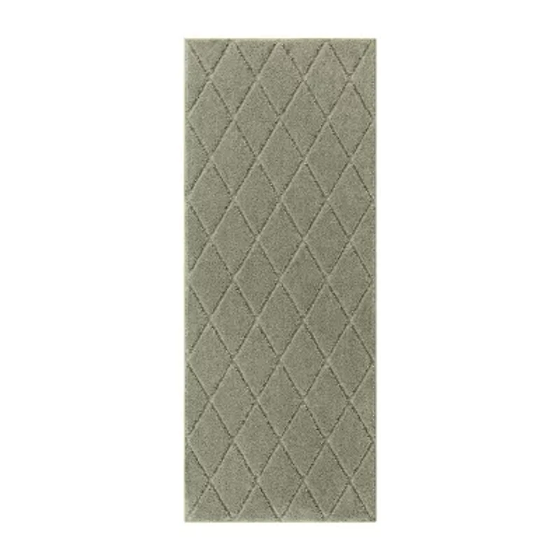 Elevate your home decor with our stunning diamond-patterned accent rug, designed to bring a touch of elegance and comfort to any space. Crafted from high-quality polyester, this rug not only boasts a chic geometric design but also offers a soft, plush feel underfoot, making it perfect for living rooms, bedrooms, or entryways. The non-skid latex backing ensures that it stays securely in place. Whether you're looking to add a stylish focal point to your decor or simply want a cozy spot to land your feet, this versatile rug is the perfect choice.