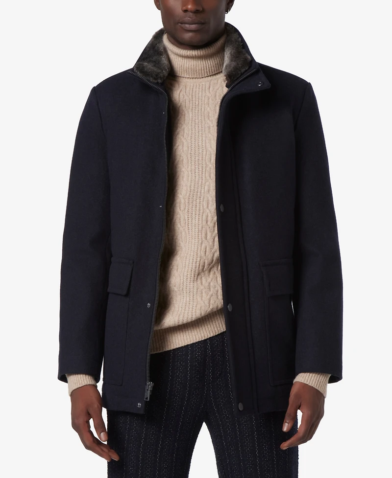 Marc New York Men's Brooks Melton Wool Car Coat with Faux Fur Collar