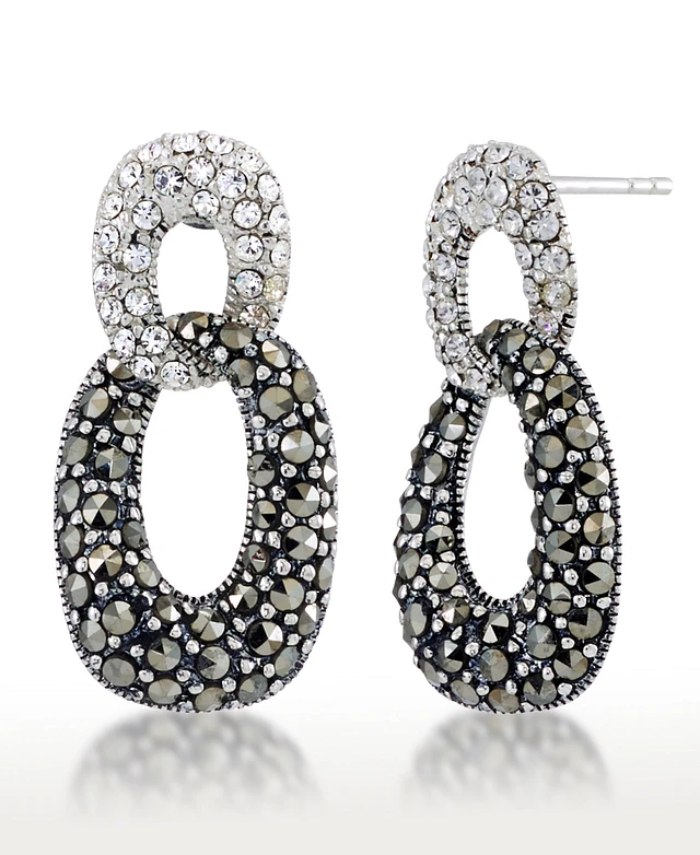Marcasite and Crystal Pave Double Oval Post Earrings in Sterling Silver