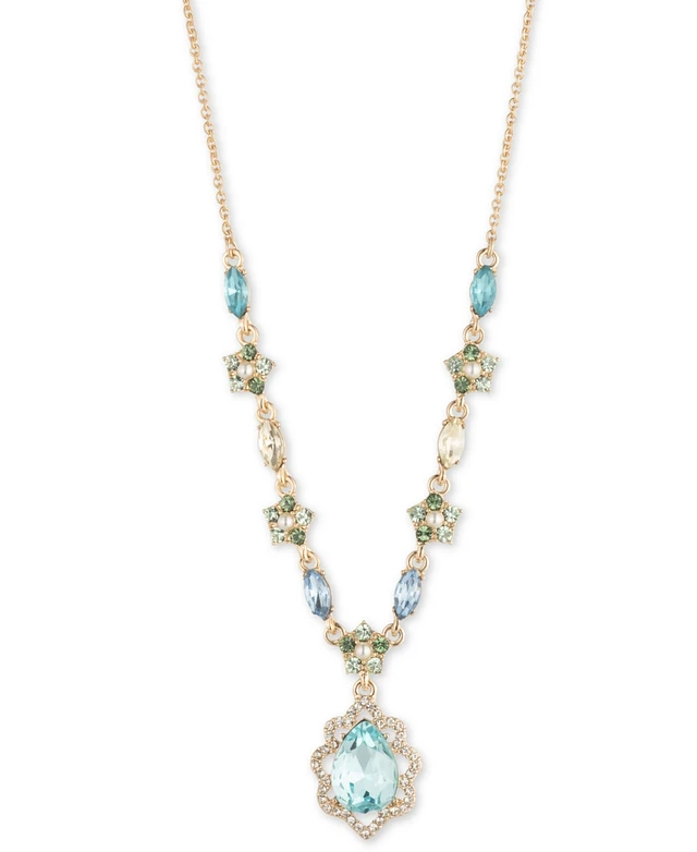 Marchesa Gold-Tone Crystal & Pear-Shape Stone Statement Necklace, 16" + 3" extender