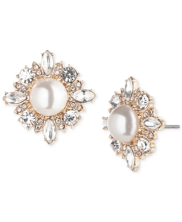 Marchesa Gold-Tone Crystal & Imitation Pearl Stud Earrings