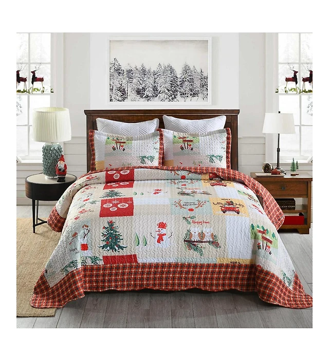 MarCielo 3 Piece Christmas Quilt Bedspread Set B023