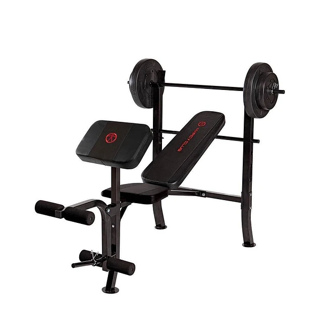 Marcy Pro Home Gym Standard Weight Training Bench with 80 Pound Weight Set
