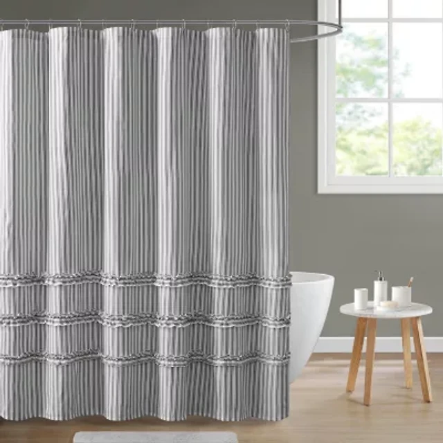 Martha Stewart Ticking Stripe Rod Pocket Back Tab Blackout Set of 2 Curtain Panel