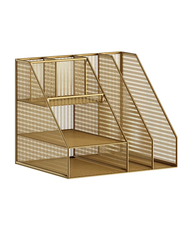 Martha Stewart Ryder Mesh Metal Large Desktop Organizer with Magazine File Holder, Pen Holder, and Storage