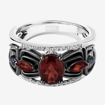 Marvel Fine Jewelry Womens Diamond Accent Genuine Red Garnet Sterling Silver Spiderman Cocktail Ring
