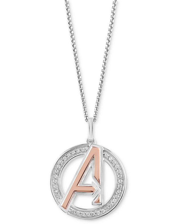 Marvel Wonder Fine Jewelry Diamond Avengers Logo 18" Pendant Necklace (1/8 ct. t.w.) in Sterling Silver & Rose Gold-Plate