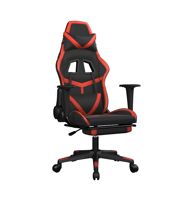 Massage Gaming Chair with Footrest Black&Red Faux Leather