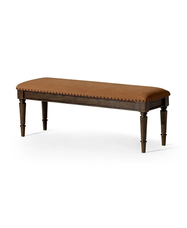 Maven Lane Elizabeth Traditional Upholstered Wooden Bench, Antiqued Brown Finish
