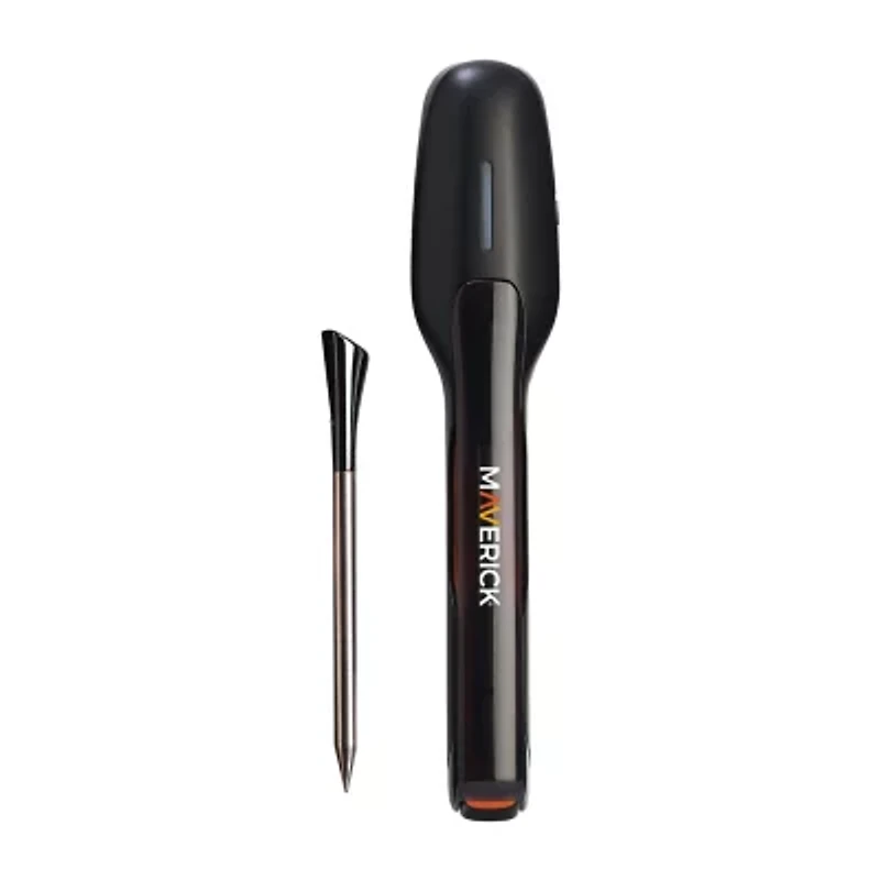 Take control of your cook like never before with the Maverick STAKE Extended Range Wireless Bluetooth Thermometer. Designed for precision and convenience, STAKE lets you monitor your cook from up to 150 feet away using the STAKE app on your iOS or Android device. Its battery-free wireless probe, powered by a super capacitor, safely endures high-heat environments and fully charges in just 2 minutes for up to 4 hours of use. Set custom or pre-programmed temperature alerts for different meats, and track your progress in real time with temperature graphs, elapsed cook time, and audible alerts. Built with food-grade stainless steel and a heat-resistant ceramic handle, the STAKE delivers both durability and accuracy. Plus, you can connect and monitor up to eight STAKE probes simultaneously, allowing you to cook multiple meats at once and ensure each one is cooked to perfection.