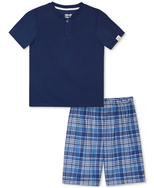 Max & Olivia Big Boys Solid Shirt & Plaid Shorts Pajama Set