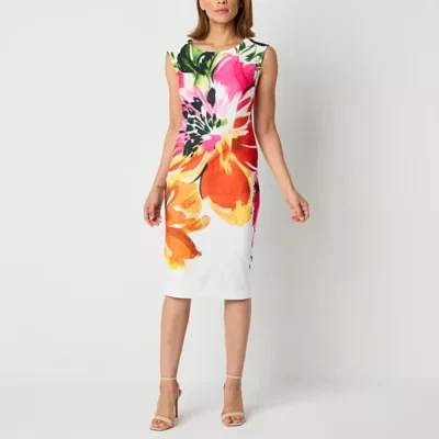Maya Brooke Womens Short Sleeve Floral Sheath Dress