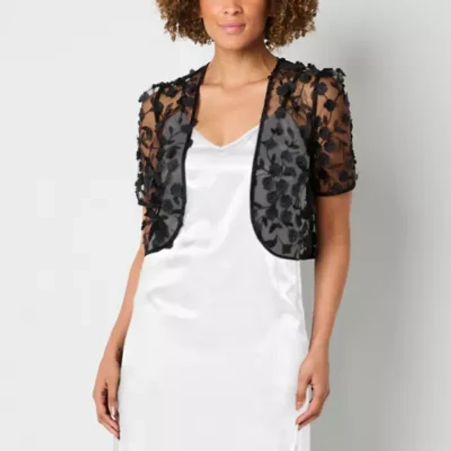 Maya Brooke Floral Womens Short Sleeve Shrug