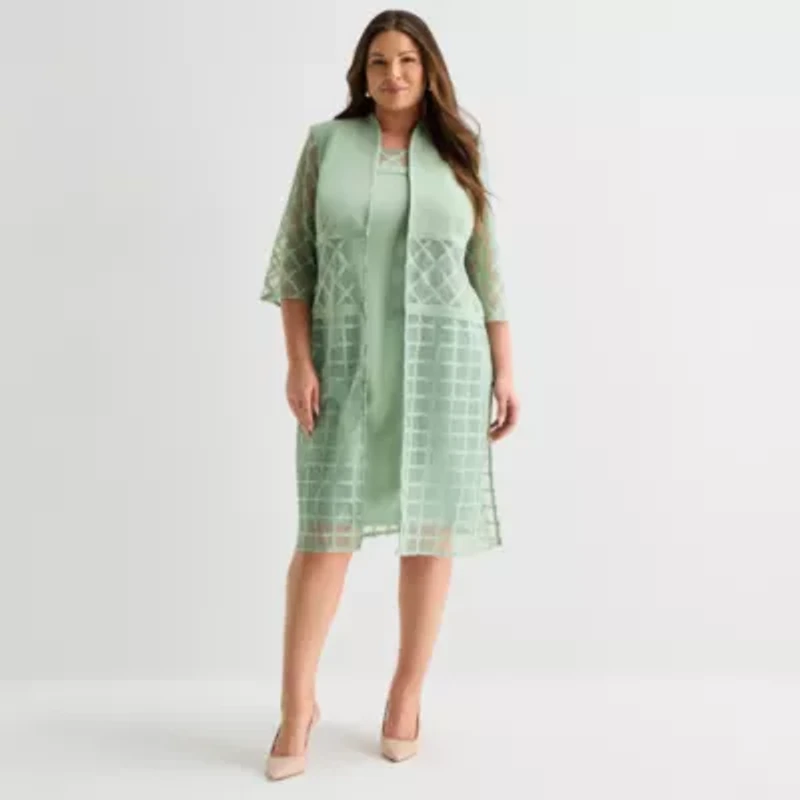 Maya Brooke Womens Plus Windowpane Midi Jacket Dress