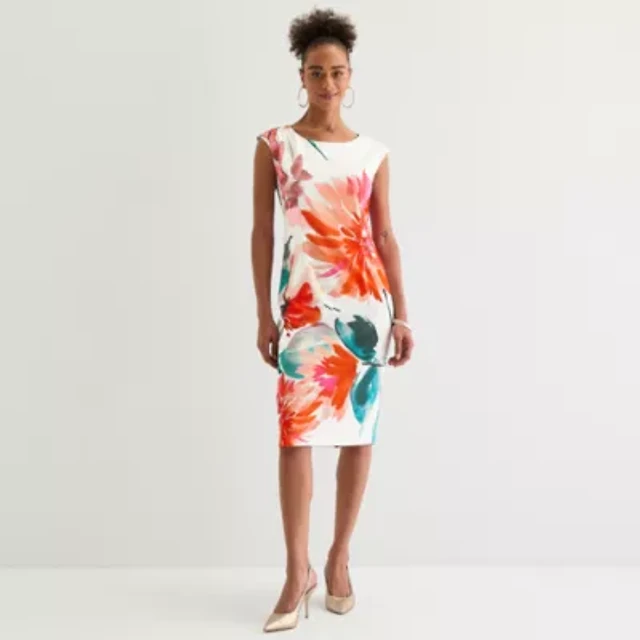 Maya Brooke Womens Short Sleeve Floral Sheath Dress