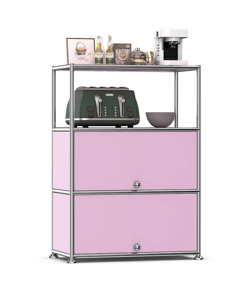 This 3-tier storage cabinet combines modern minimalist design with practical functionality, featuring a sturdy metal frame and sleek white panels. Perfect for kitchens, dining rooms, or versatile spaces, the top open shelf is ideal for placing coffee machines, condiments, or decorative items. The middle and bottom tiers come with doors to conceal clutter, keeping your space neat and organized. The cabinet is built with durable materials and equipped with non-slip feet to protect floors and ensure stability. Its compact footprint maximizes storage without occupying much space, making it an excellent choice for enhancing home storage efficiency.