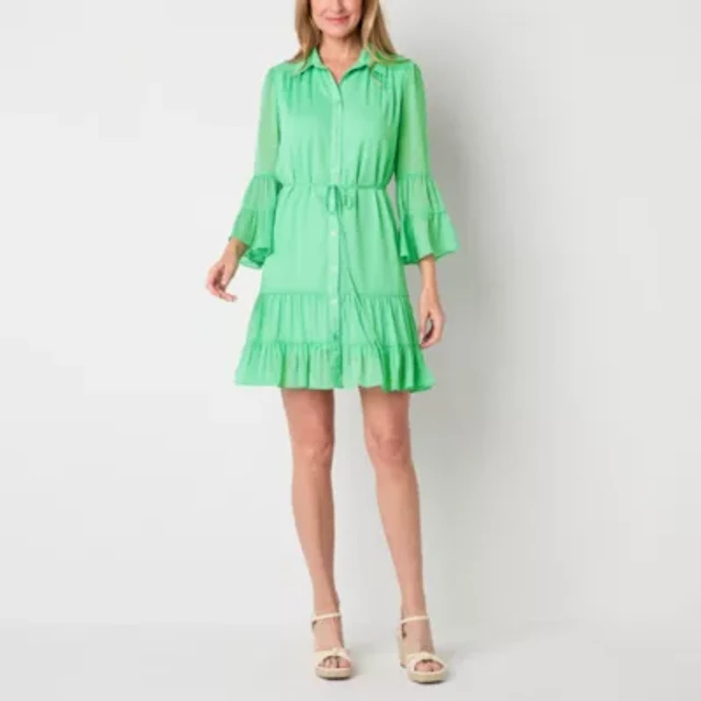 Melonie T Womens 3/4 Sleeve Dots Fit + Flare Dress